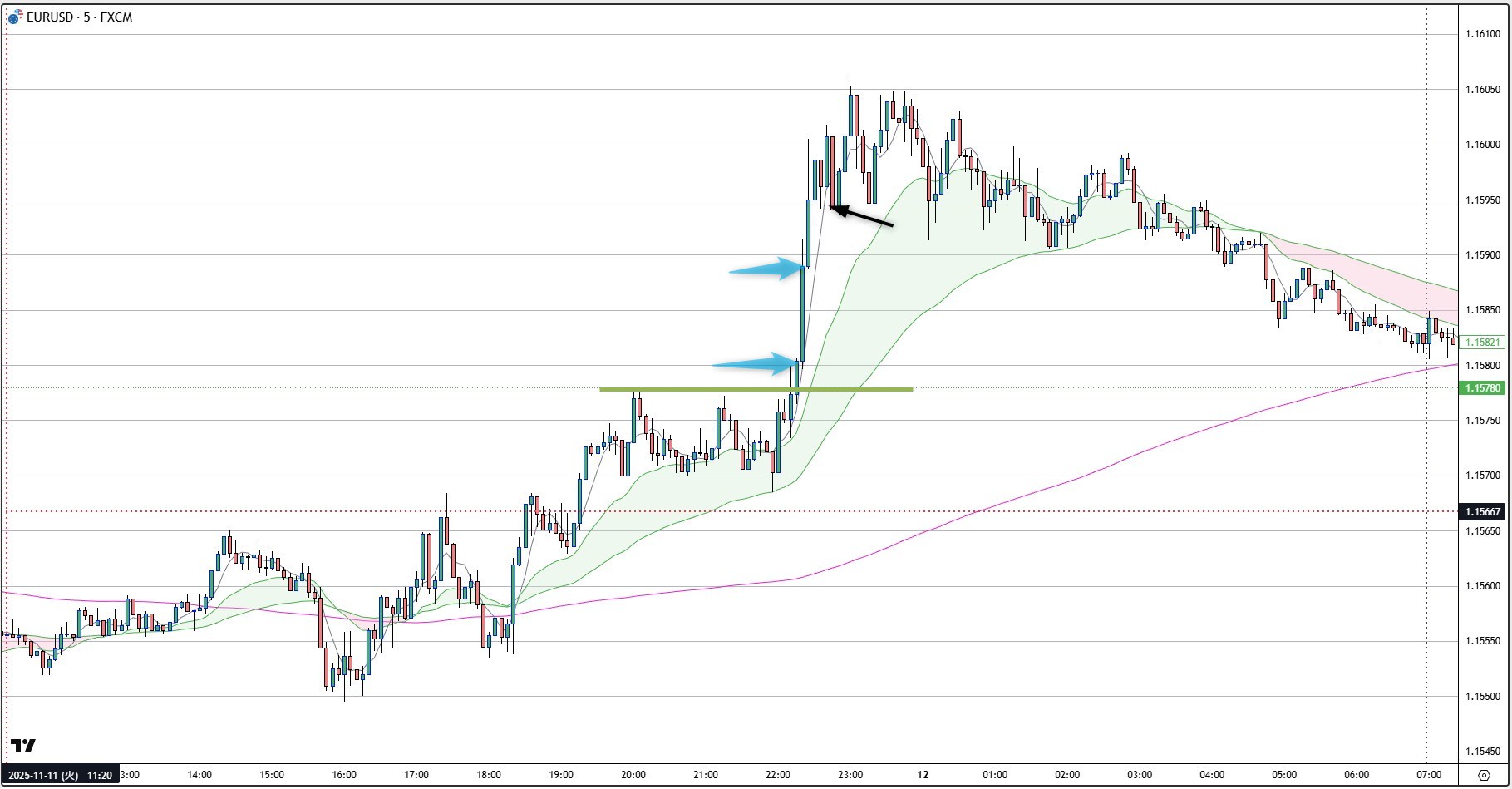 FXブレイク2025.11.11【USDJPY】円安の流れの中で押し目買い狙い!ただし頭打ちラインに要注意! ポスト シェア はてブ 送る Pocket 短期トレード 【USDJPY】円安の流れの中で押し目買い狙い!ただし頭打ちラインに要注意! 今日の注目通貨 USDJPY USDJPY 11月11日 USDJPYは、フラッグ形成中 A トレンドライン下限付近から押し目買い狙い B 153.9サポート付近からの押し目買い狙い C 153.71サポート付近からの押し目買い狙い その後のUSDJPY USDJPYは、154.44レジスタンスを一度ブレイクしました。