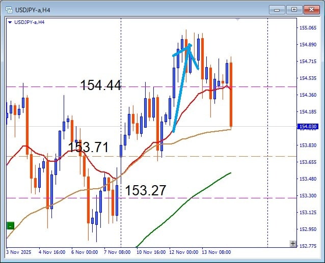 USDJPYは、154.44レジスタンスを一度ブレイクしました。